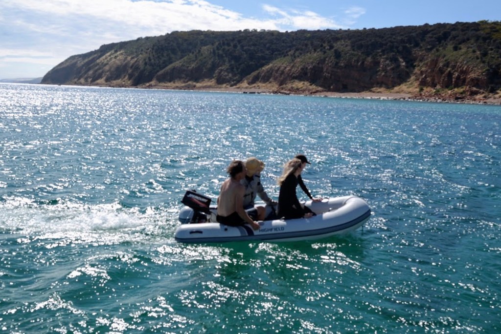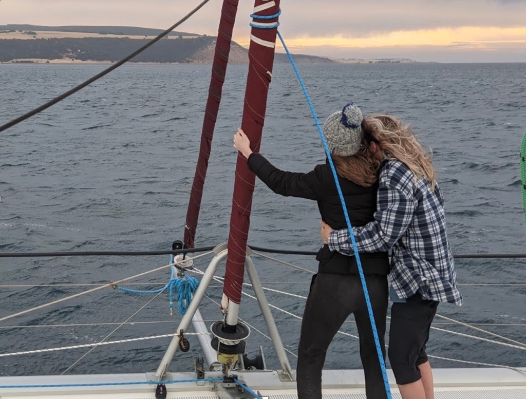 Since leaving university Alec had taken up sailing, and he even preferred the sea to the land. He invited me, Emilia, and Annika to sail with him and his sister Verity to Kangaroo Island, south of Adelaide. We eagerly accepted, and soon we found ourselves on his boat heading to the island. Emilia and Annika position themselves at the front of the boat.