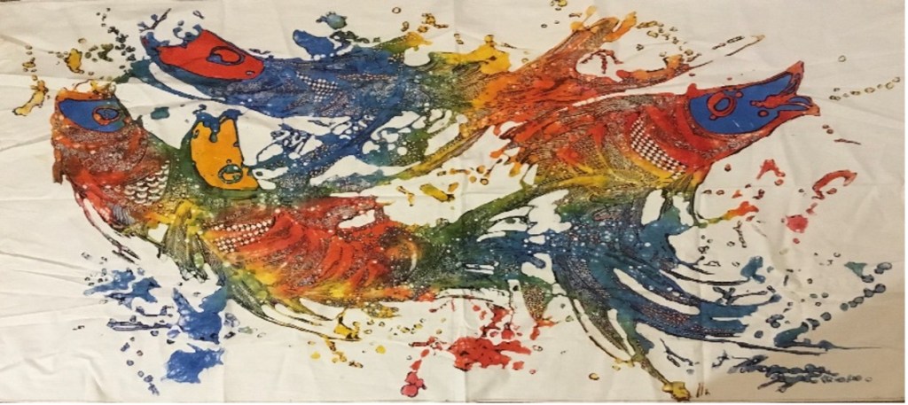 Dewar couldn’t resist taking me to view some paintings and batik. I fell in love with a batik featuring fish swimming. It was extraordinarily intricate.
