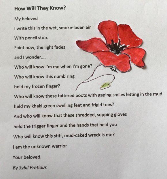 Sybil Pretious offers art and poetry commemorating the Remembrance Day that mark the end of the first world war.