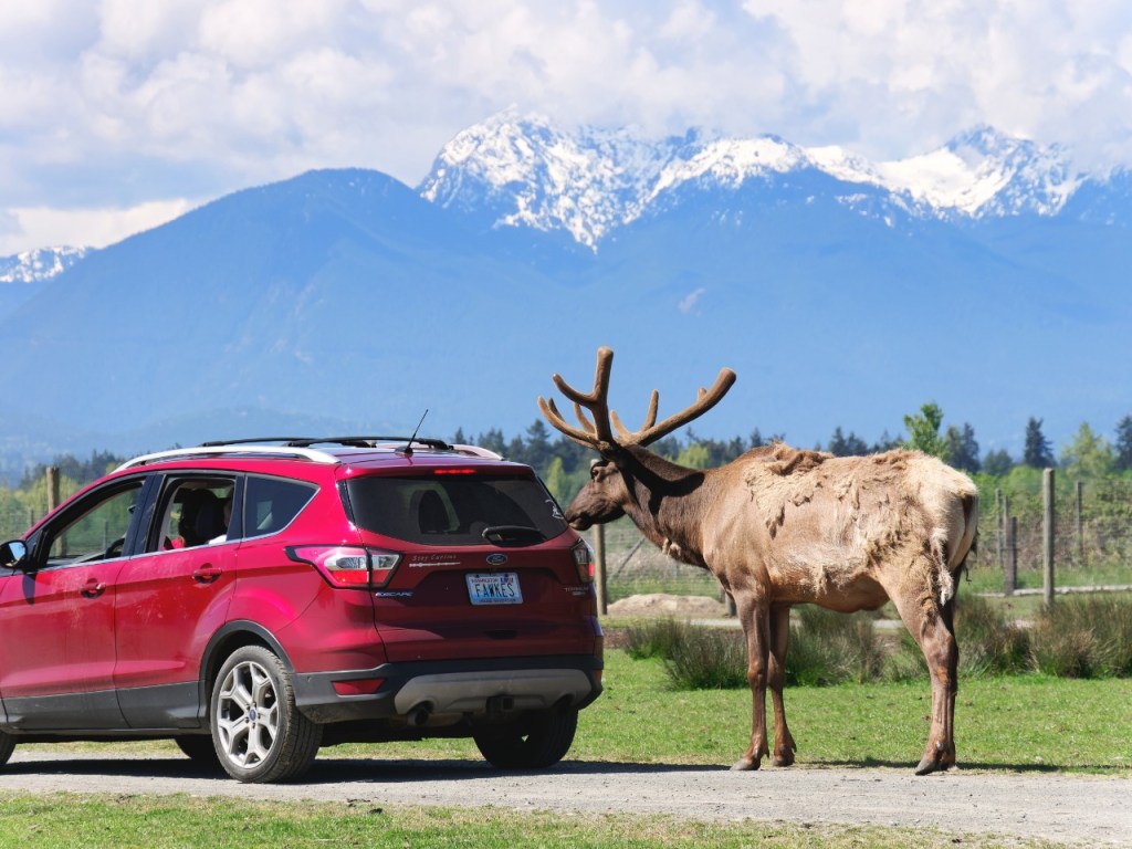 The hour long drive-through experience at Olympic Game Farm was exhilarating, surreal and fascinating. We drove through rugged pathways with car windows shut, occasionally opening a chink to feed llamas, elk or any other young animal that we thought would not ‘charge’.