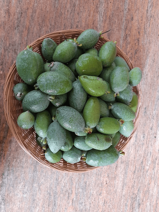 Over the next few days the temperature persisted and we felt too tired to do anything. This was followed by a sore throat so severe that we could not even sip a cup of coffee. I suddenly craved a smoothie and remembered a recipe a friend in Japan had given me when my children were toddlers. This was made by combining a banana, some milk, and slices of canned pineapple in a blender. I told Alex the recipe, and he substituted yogurt for milk. I suggested adding feijoas from the garden.