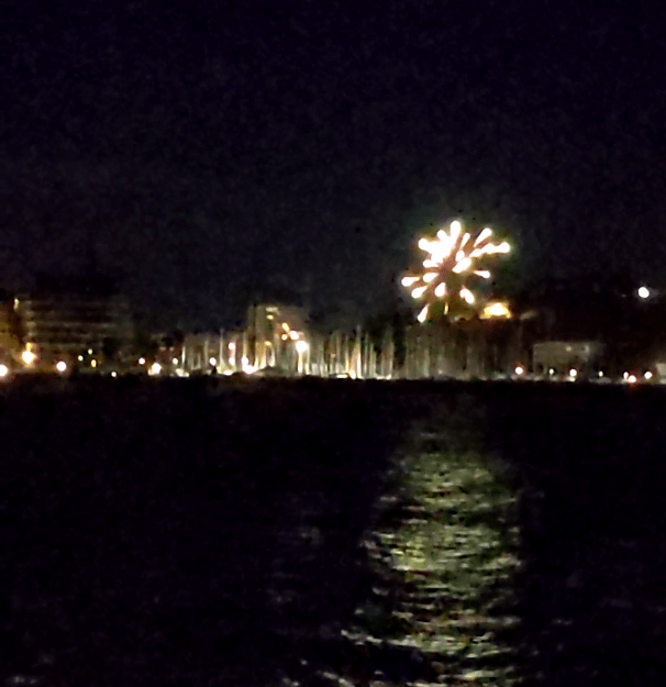 After so many days and nights at sea I was excited and relieved to see land. I looked to the shoreline and noticed fireworks erupting from the hills. Was this a special welcome for our Australian vessel? After safely anchoring, Alex retrieved the sparkling Tasmanian wine we had saved for the celebration of arriving at port. He stood at the bow, exultant, and made a speech, as he uncorked the bubbly wine. It made a large popping sound and then splashed into the ocean. Alex filled our glasses, and we toasted our arrival in Nouméa.