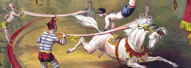 Enough was enough! “ Monsters! Monsters!” cried out groups of red-faced, infuriated men from the back of the stalls, screwing up their eyes. Rotten tomatoes were thrown at the shameless buffoons by the farmers who had brought them along for the occasion. Ladies screamed. The children sat in dazed awe, following each pass of the laughing torso as if they were following a football match. The frolicking clowns, undismayed by the tomatoes, performed cartwheels and somersaults from one end of the ring to the other.