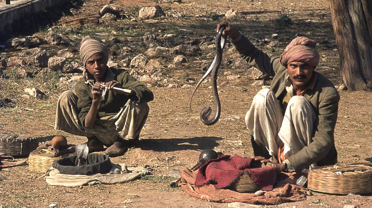 Far away from the densely populated civilised world, the nomadic tribes of snake charmers make their temporary homes sometimes right beneath the deep blue mountains, sometimes among deserted and impassable forests, and sometimes by the foamy mountain brooks or in vast stretches of barren land.