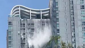Next thing, we were all running out of the building which was swaying. It felt like an apocalypse. The stuff out of Hollywood movies. People were pouring outside, and many started pointing upward at something with horrified eyes. As I turned my eyes in that direction, I was stunned at what I saw: the rooftop pool of the hotel in the skyscraper near us was splashing down like a mountain cataract.