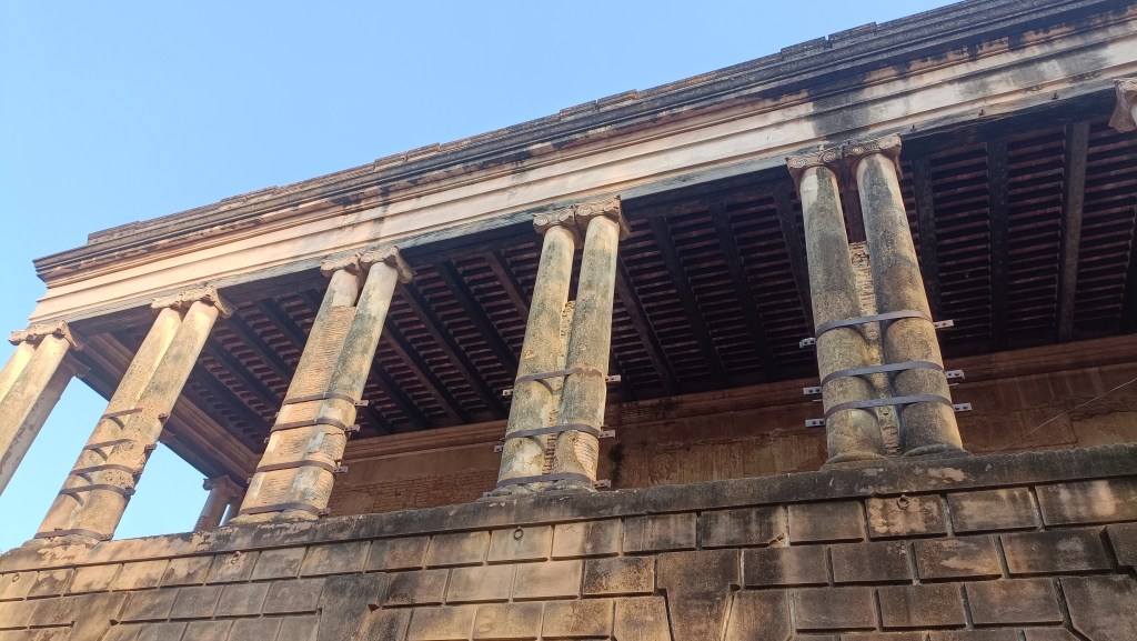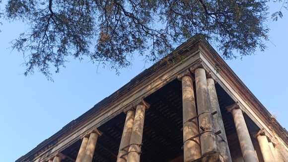 Like it always happens, visiting this site is like opening a door and entering the mystifying corridors of a past that can never be replicated. The neo-classical architectural style itself is easy on the eyes as spacious arches, halls, high roofs and round pillars — hypnotic ballasts of extreme strength – mesmerize the visitor. An enchanting spiral staircase divides this space into two storeys while the halls and Greek columns, beautifying its iconic exteriors, make us hark back to the glory days of interracial socialization that prevailed here. Lakhauri[1]betweenbricks and majestic stones’ sturdy network further arrests our undivided attention.