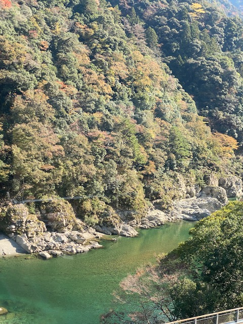 As I gazed out at the glassy emerald waters, which reflected the rocky banks, the voice announced that we were approaching Awa-Ikeda. High school baseball, I thought. Sure enough, the voice told us that we would soon have a view of baseball players practicing at Ikeda High School’s diamond, and that they had once won the National High School Baseball Tournament at Koshien.