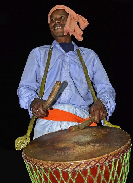 Meanwhile, the beats of the dhamsa and madol came wafting from the fairground. Intoxicated with mahua [6]and hanriya, our young men and women were dancing in a circle, hand in hand. A tide of joy washed over the hills. The whole forest was in a state of intoxication with the drim drima drim beat.