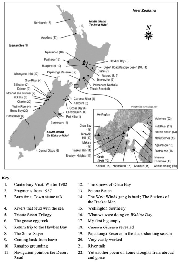 Enormously. Tongues of Ash gives testament to that. It includes a map I drew of New Zealand that shows the places that are referenced in the book’s poems (see below) — there are many and I have lived in or near most and visited the others. While in the army, I was posted to Singapore for two years, but funnily enough, that period of time, while hugely broadening my experience and knowledge of different Asian cultures and place, has yet to spawn any poetry.