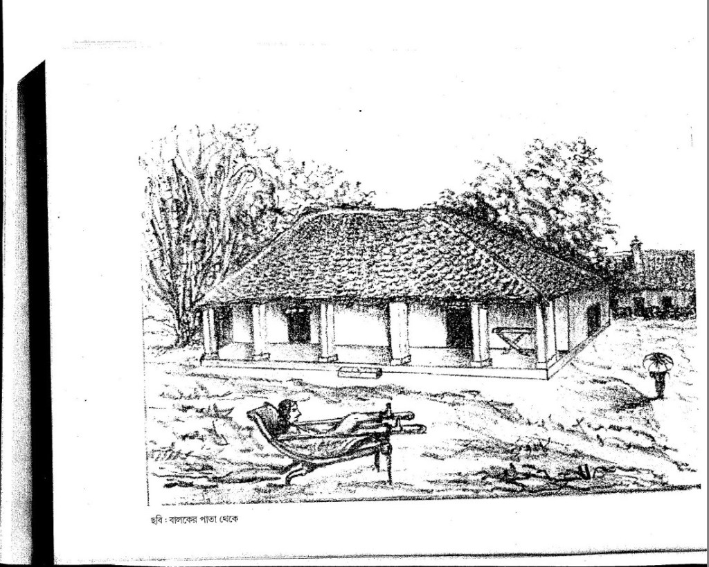 In 1885, under his sister-in-law Jnanadanandini’s editorial venture, a children’s magazine called Balak was published from the Tagore household in Calcutta. Though the life-span of this magazine was less than a year and only eleven issues were totally published, it contained different writings of the young Rabindranath, who would handle a lot of things for the publication. This magazine was later merged with Bharati and edited by his elder sister Swarnakumari Devi. Among the different entries that Rabindranath contributed for Balak and published in Vol. 3, Ashar 1292 B.S. (July-August 1885) was an essay called “Dus Diner Chhuti” (Ten Days’ Holiday) that narrates his trip to Hazaribagh that year during the school holidays. The two children referred to in this article were Surendranath and Indira, son and daughter of his elder brother Satyendranath and Jnadadanandini Devi. The sketch of the bungalow below is also done by him.