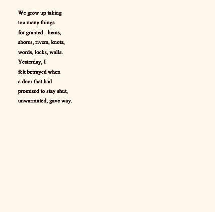 Poems like ‘Leaf in My Room’ and ‘In Which Mawlynnong is a Fractal’ are brilliant poetic ratiocinations explored through questions and answers. While in the former, each answer leads to more questions and in the latter, the questions don’t stop for answers, in both the poems we are brought only and amply close to the understanding of language’s failure to ask or answer, and in turn, to know or mirror the world. And this overpowering awareness of the powerlessness of language to make sense of the world is perhaps what bestows its greatest strength to Nitoo Das’s poetry.