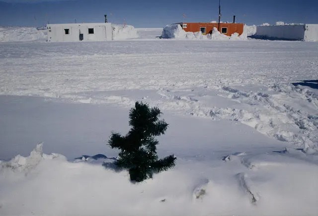 Williams Field airfield in Antarctica with an artificial Christmas tree the only vegetation. Photo courtesy: Keith Lyons