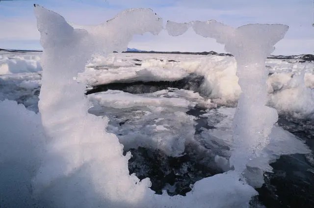 A natural ice sculpture formed by melting ice in the middle of summer at Bratina Island, Antarctica. Photo courtesy: Keith Lyons