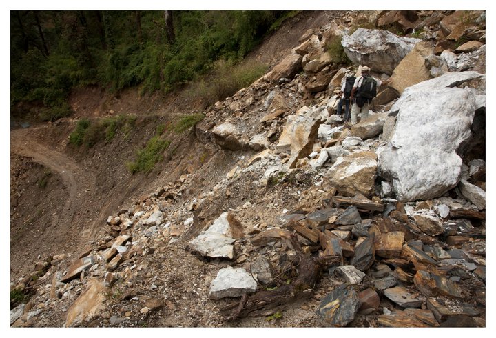 Trekking with NabinjiHiking though a landslide