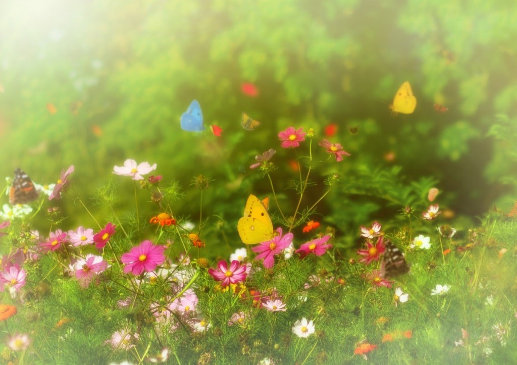For a fleeting moment, one with silken wings alights on my shoulder. It has pink and yellow wings, a combination so strange. It looks hideous and, yet, I wonder if it is blessed with the knowledge to castigate itself.
