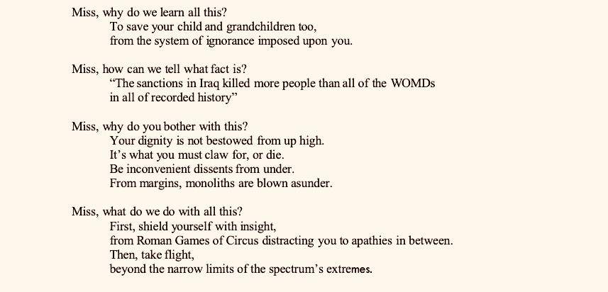 That violence is intricately linked to power politics has been showcased often. But, what would be really amazing to see would be how we could get out of the cycle as a society. With gun violence being an accepted norm in one of the largest democracies of the world, perhaps we need to listen to the voice of wisdom found in the fiction by Steve Davidson who meets perhaps a ghost in Hong Kong. Musing over the ghost’s words, the past catches up in Sunil Sharma’s story, ‘Walls’. Sharma has also given us a slice from his life in Canada with its colours, vibrancy and photographs of the fall. As he emigrated to Canada, we read of immigrants in Marzia Rahman’s touching narrative. She has opted to go with the less privileged just as Lakshmi Kannan has opted to go with the privileged in her story.