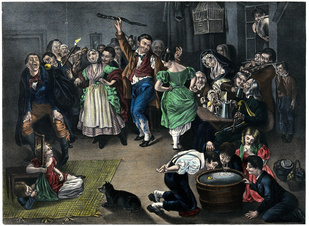 The Puritans of New England, refused to observe any holidays which might be associated with pagan beliefs – including Christmas, Easter and Halloween, but the Irish, who had always celebrated, shifted North America’s idea of Halloween when they arrived in large numbers after the Potato Famine. The jack o’ lantern which became our carved pumpkin originated from the Irish folk tale of Stingy Jack, a drunk and man who fooled the devil into banning him from hell but due to being a sinner could not enter heaven. When he died, he roamed the world carrying a small lantern made of a turnip with a hot ember from hell inside to light his way. People carved pumpkins or similar to ward off the ghost of Stingy Jack.