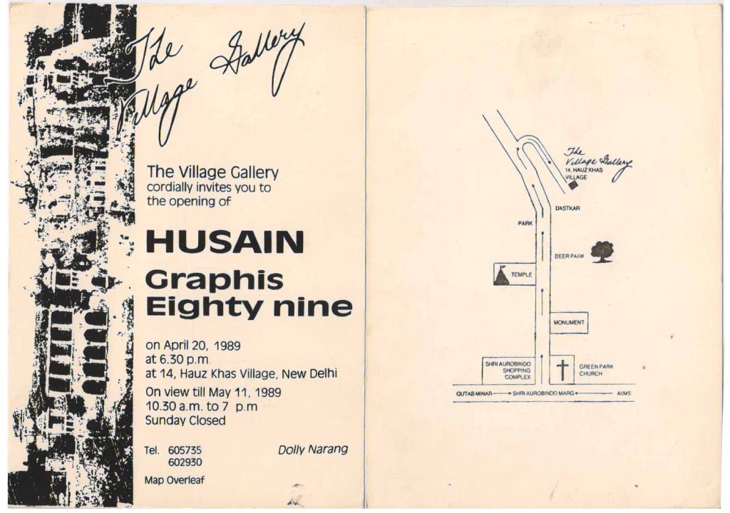 While planning the execution for the show of his graphics, I had the opportunity to interact more frequently with Husain Sahib. He wanted the show to have the title ‘Husain Graphis 89’. “The word graphics to be spelt without a ‘c’, as it is spelled in French,” he said. Cards were printed announcing the exhibition of “Husain Graphis 89”. As the exhibition cards were delivered to their addressees, I was inundated with calls advising me that the word “graphics” had been misspelled in the card. I had a lot of explaining to do in call after call.