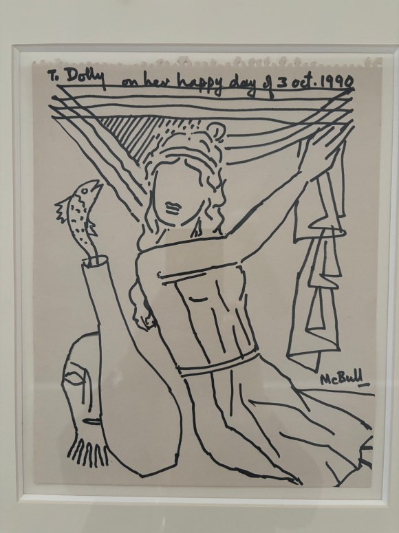 The sketch made by Maqbool Fida Husain for Dolly Narang on her birthday: Husian signed himself McBull, a humorous take on his first name, Maqbool. He was known to sign his name in various ways. Photo provided by Dolly Narang