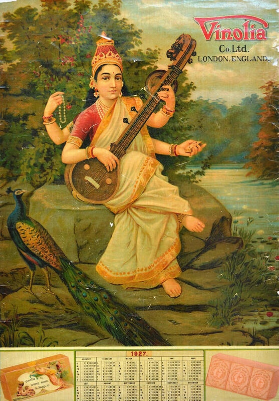 The dawn of every New Year brings with it the need for a new calendar and a couple of new diaries. So, wholesale markets in every major city on the map flourishes with these items in every shape and size. In the years of my growing up, a government organisation calendar, with only the dates and simply no illustration, was routine. Forget 12 images for as many months, even half that number was a rarity. This, even though in the previous decades Raja Ravi Varma’s [1] evocation of Saraswati, Shakuntala, Nala Damayanti or Lady with a Lemon, were coveted adornment for the walls. In certain instances, these images were individually dressed up with sequins and pearls too! Oleographs and mechanical reproductions had, by this time, won past hand paintings that once covered the mud-plastered walls with stories of Ram-Sita Vivaha[2], among others.