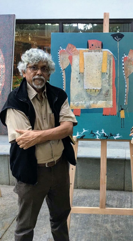 Haren Thakur with his painting. Photo provided by Ratnottama Sengupta