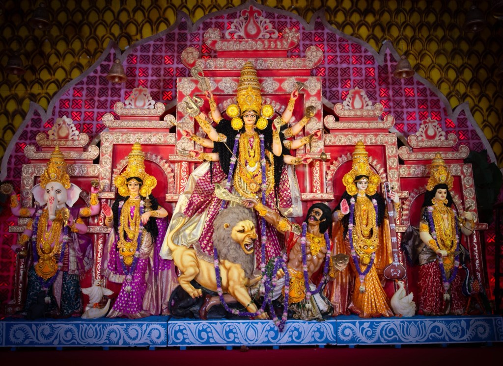 Durga as a feminist force is perhaps the most natural interpretation of the goddess who was construed as a Goddess because evil demons had sought immunity against all other forms of power save a woman. Durga was conceived as Durgati Nashini — Destroyer of Misfortunes. The mace, the trident, the circular Sudarshan, the bow and arrow, the sword – every single weapon that empowered her was gifted by a God, be it Vishnu, Brahma, Shiva or Agni, Vayu, Varun, or even Yama. Read, the masculine forces. Perhaps that is why, the jagirdars and zamindars, under the nawabs and the British Raj worshipped Shakti, the icon of empowerment. The Raj families of the City of Palaces, the Debs of Shovabazar, the Chowdhurys of Behala, the Roys and Duttas of Kalutola and Nimtala, the Mullicks of Marble Palace or Rais of Andul – they still pay their obeisance to the Image of Shakti. And the celebration in the ancestral homes of these bonedi – once aristocratic – families are a tourist attraction.