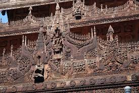 After ambling through the chaotic fruit and vegetables markets of Mandalay, we made our way with our guide, Swan, to our first memorable site, the Shwenandaw Monastery, located at the foot of the Mandalay Hill overlooking the city and countryside. The monastery was speckled with trees, golden domes and bell-shaped towers gleaming in the winter sunlight. The intrepid guide explained everything in great detail, and perfect English I might add. I remember asking Swan how he had learned English, but never got a satisfactory answer to account for the ease with which he spoke.